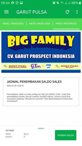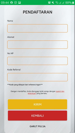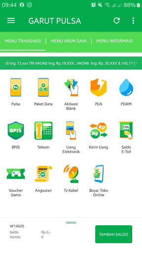 Android Uygulaması Garut Pulsa, nerede olursa olsun sadık garut darbe elemanları için ücretsiz bir mobil uygulamadır. Bu uygulama, doldurma şarjı, elektrikli belirteçler, faturalı fatura ödemeleri, satın alma oyun kuponları vb. Gibi çeşitli işlemler yapmanızı kolaylaştırır.