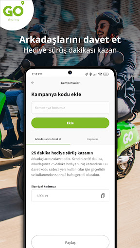 GO Sharing uygulamasıyla elektrikli moped kullanmanın tüm avantajlarını deneyimleyin;