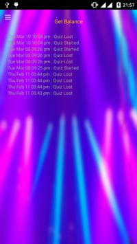 A simple quiz containing of different levels of question. Question is a simple multiple choice containing four choices. You have to select one choice in a given amount of time. The time is dependent on the complexity of question. If you fail to answer in a given amount of time of any level question then you will loose the quiz. You will win coins for winning the quiz and loose nothing for loosing the quiz.