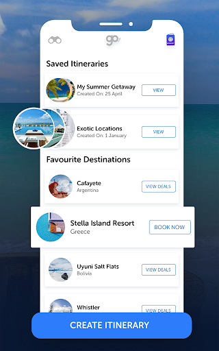 GO Travel App kullanarak bir seferde dünyayı bir kaydırın. Protin, tenha plajları, tropik ada kaçaklarını keşfedin, en iyi dağ kayağı, bir sonraki tatilinizde ziyaret etmek için en popüler otelleri, bar ve restoranları kullanır.