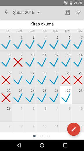 Aylık takvim görünümü. Tek ekranda bir alışkanlığınızı görüntüleme ve işaretleme imkanı.