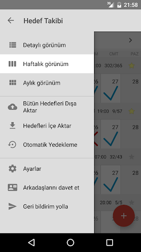 Alışkanlıklarınızı / hedeflerinizi haftalık olarak veya istediğiniz günleri seçerek planlayabilirsiniz.