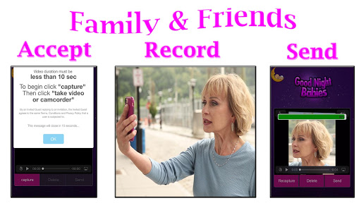 You then send a text message invitation to your friends and family that includes a link that will allow them to record a video GoodNight message and send it back to you with ease.
