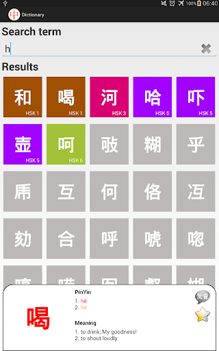 Uygulama Ek olarak, Pinyin veya Çince karakterleri kullanarak aranabilir, sözlükte yerleşik bir sözlük sunar.