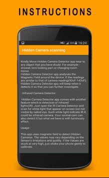 analyse the magnetic activity around the device. If magnetic activity seems similar to that of camera, this app will beep and raise alarm for you so that you can further investigate.