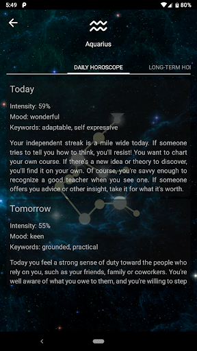 Burçunuz, hayatınızın geçmiş, şimdiki ve geleceği için aynadır. Çözücü zorlukların, fırsatların kilidini açmasına ve başarıya ve barışa yol açan gizemleri çözmeye yardımcı olur. Uygulamamızla geleceğe bakın! "Burç Profesyonel" uygulaması, bugün, bugün, yarın, hafta, ay ve tüm 2019 yılı için profesyonel bir astrologtan astrolojik tahminini göstermektedir. Günlük burç her gün güncellenir. Sizin için mağazadaki kozmik hizalamaların farkında olmak için burcunuzu tanıyın.