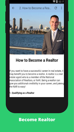 How to Become a Real Estate Agent learning app. A lot of people consider changing to a career in real estate, but don't know explicitly how to become a real estate agent. There are three initial steps, two of which you must take, if seriously considering changing your career to this fruitful occupation.