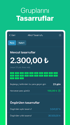 Ayık kalarak para ve zamandan ne kadar tasarruf ettiğinizi görüntüleyin.