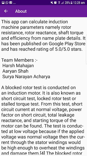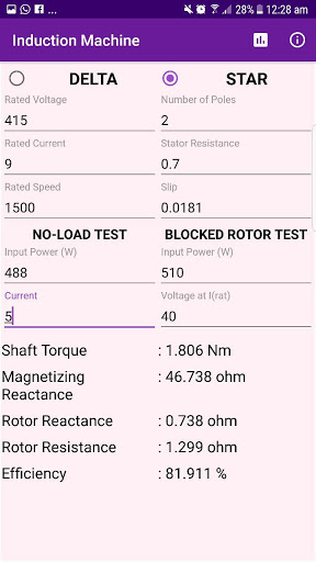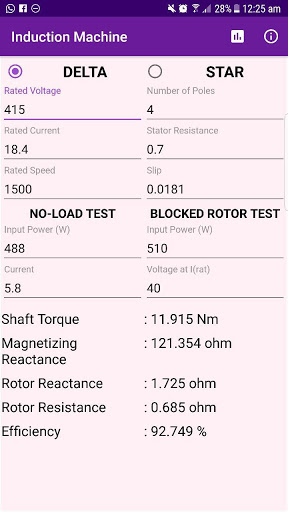 Bu uygulama indüksiyon makinesi parametrelerini, yani rotor direnci, rotor reaktanlığı, şaft torku ve isim plakası detaylarından verimliliği hesaplayabilir.