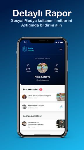 Aile için güvenli çevrimiçi sosyal medya etkinlik raporları. Çocuklarınızın sosyal medyada ne kadar zaman geçirdiğini bilmek ister misiniz? Insta Online uygulamasıyla çocuğunuzun sosyal medya için son görülme etkinliklerini analiz edin.