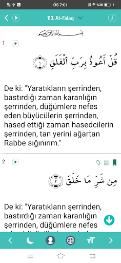 • Günün Kuran Ayeti - Size her gün Kuran-I Kerim'den rastgele bir ayet gösterir. Uygulama, güne harika bir başlangıç yapmak için özenle seçilmiş ve uygulamaya dahil edilmiş 300 Ayet içerir. Günlük bildirimi istediğiniz bir zamanda almak için hatırlatıcılar da ayarlayabilirsiniz.