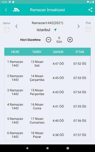 • Herhangi bir yer / yıl için Ramazan vakitleri