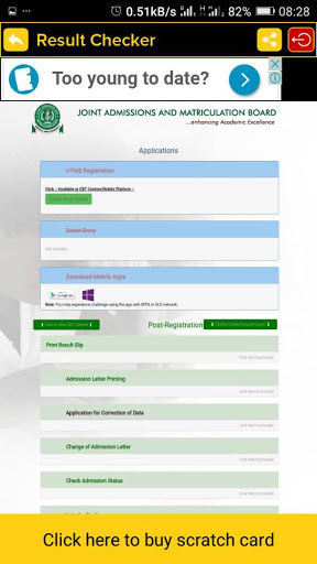 Result Checker mobile app is for WAEC, JAMB, NECO and NABTEB instant result checking.