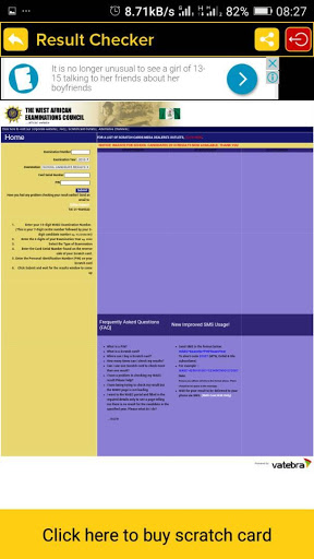 This app is not a property of any examination body (WAEC, JAMB, NECO or NABTEB) It is strictly an instant result checking app brought to you by