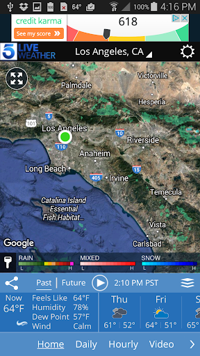 KTLA mobil hava durumu uygulaması şunları içerir: