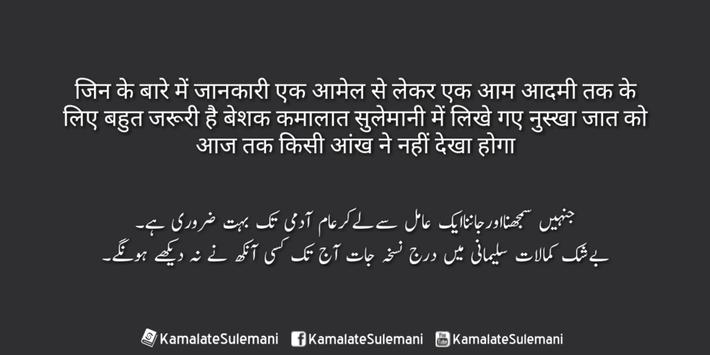Ye Kamalat e Sulemani ki official online app hai. Jis mai aap daily Rohaniyat, Amliyat, Taweezat, Kala Jadu (sehr), Sifli ilm, ilm e najom, ilm e jafar, ilm ul adad, ilm e harof, ilm