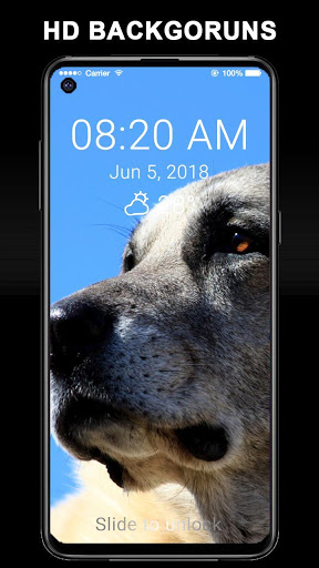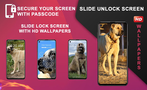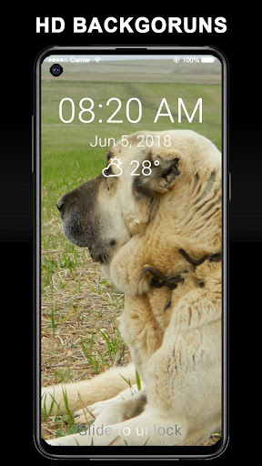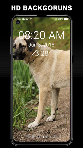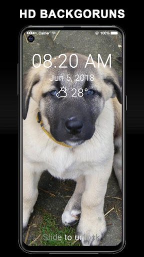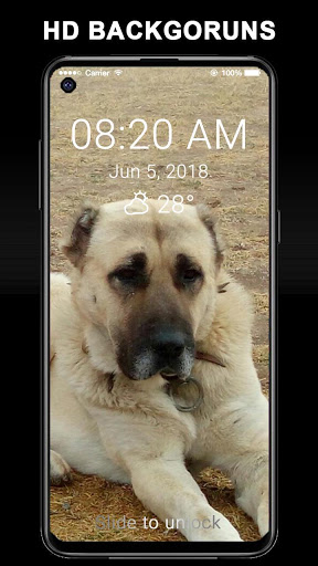 Uygulama ile IOS stili kilit ekranına ve Kangal köpeği ile ilgili arkaplanlara sahip olursunuz.