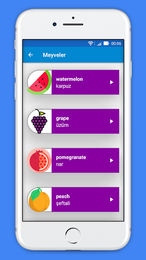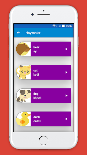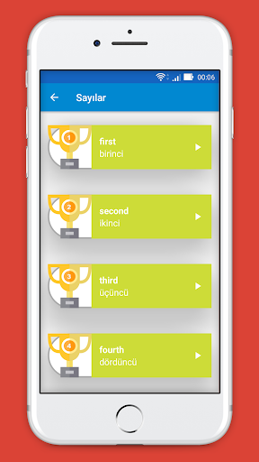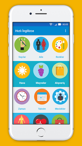Sayılar, Aile, Renkler, Cümleler, Hava Durumu, Meyveler, Alışveriş, Zaman, Takvim, Meslekler, Vücut, Sağlık, Acil Durum, Yönler, Yemek vs....