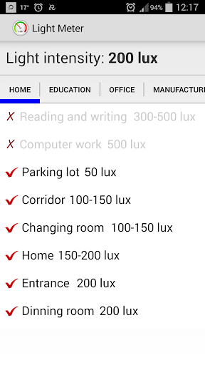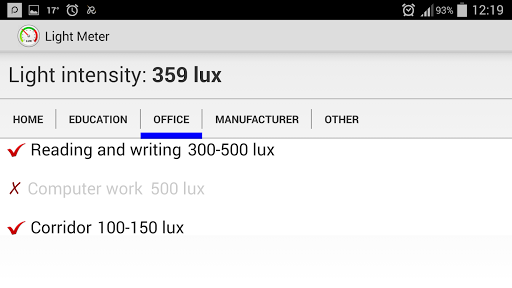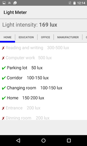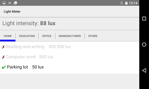 Light Meter, farklı etkinlikler / ortamlar için önerilen ışık yoğunluğu aralığı sağlayan bir uygulamadır ve mevcut ışığın hangi etkinlik / ortam için uygun olup olmadığını kontrol edin. Görme yeteneğini korumaya katkıda bulunur!