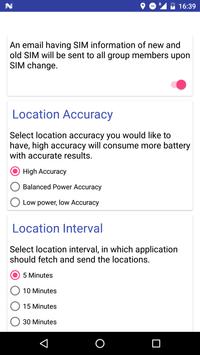 • Live Family Location Tracker can be configured for GPS and battery usages under Settings, you can select the location accuracy, interval for GPS captures, SIM change alert settings and all.
