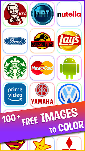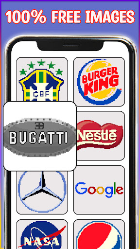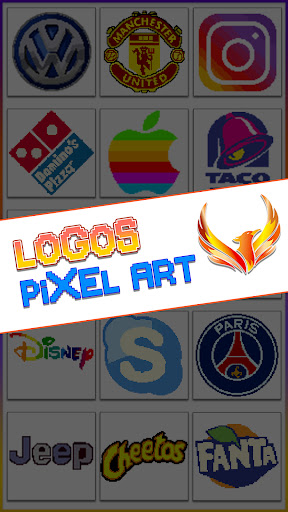 Logo markası oyunu, Pixel Art Logo Rengi Stresinizi ve Yorgunluğunuzu serbest bırakmak için burada.Detay markalı logo resimlerini ve aynı zamanda anti-stres piksel renklendirmeyi renklendirmenin çok harika yolu.