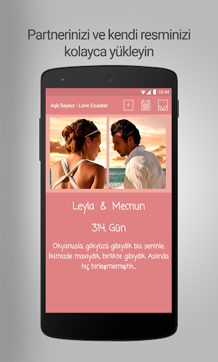Aşk Sayacı - Love Counter çiftlerin birbirleri ile olan ilişkilerini kolaylaştırmak üzere çıkarılmış gün hesaplama uygulamasıdır.İçerisindeki zenginleştirilebilir özellikleri ile daha kolay kullanım olanağı sağlar.Sevgili gün sayacı olarak da bilinen Aşk Sayacı - Love Counter uygulaması birlikte geçirdiğiniz anıları, mekanları veya gezdiğiniz yerleri kaydetmenize olanak tanır.Kaydettiğiniz anıları(Sevgi günlerini) dilediğiniz zaman açarak bakabilirsiniz.Aşk sayacı birden fazla tema desteğine sahiptir.Bunlardan tarzınıza uygun olanı seçin ve kullanmaya başlayın.Aşk sayacının özellikleri ise şöyle;