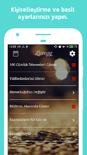 Kibar ve göz zevkine uygun olarak tasarladığımız bildirim çubuğunda isim ve gün olarak görebileceğiniz Aşk Sayacı Lovegg, her zaman parmağınızın ucunda olacak. Telefonunuzun ana sayfasına ve dilediğiniz herhangi bir sekmesine de düzenlemiş olduğumuz diğer widgetleri ekleyerek özel gün takviminizin kurulumu yapabilirsiniz.