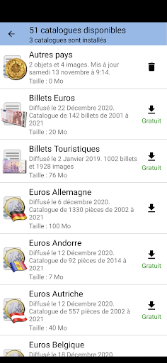 Euro parçaları, biletler, eski parçalar, turistik biletler koleksiyonunuzu yönetmek için uygulama. Avrupa Topluluğunun Tüm Ülkeleri için Euro olarak Parçalar Katalogları