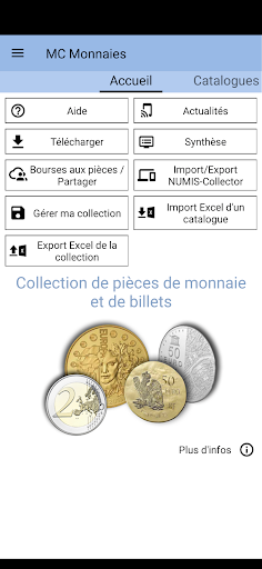 - Koleksiyonunuzdaki parçaların yönetimi, satılık, satın almak veya alışveriş yapmak. Koleksiyonunuzun Numis-Pulclector alt pencereleriyle dışa aktarılması. kişisel bir katalog ve MBC bulutundaki koleksiyonun diğer akıllı telefonlarda veya tabletlerde bulmak için.