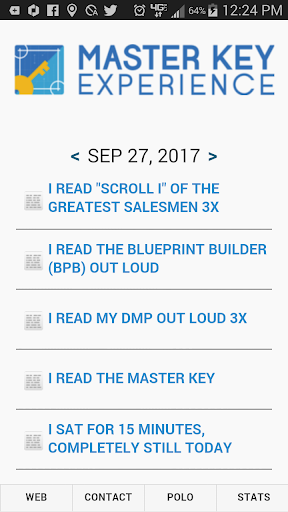 Take your Master Key learning experience to the next level with this free companion app. Consistency and follow through are critical to successfully changing our old habits and clearing the path to a new tomorrow. There is greatness in all of us, once we rid ourselves of the limiting beliefs that have been holding us back. This Mobile app is designed to help you track and remain consistent in following the steps required to successfully complete the Master Key experience.