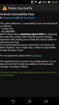 To check if you're vulnerable, you can use other apps available on the store such as SRT AppScanner (https://play.google.com/store/apps/details?id=de.backessrt.appintegrity) or Bluebox Security Scanner (https://play.google.com/store/apps/details?id=com.bluebox.labs.onerootscanner).