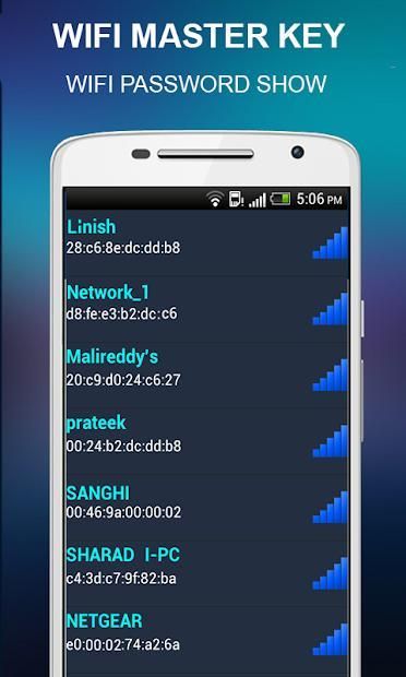 WiFi Master key password show app shows only the password of WiFi networks to which you have been connected!