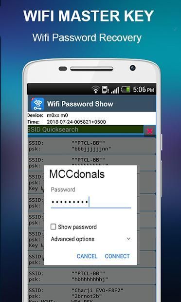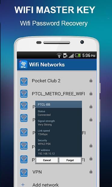 Master Wifi Key Password Show is a useful WiFi tool which helps you to recover all the passwords of the wireless networks you have ever connected. It is quite often that we forget the password of the WiFi network, no worry, WiFi Password Recovery will help to recovery all the passwords from your system database. But this requires the root permission.