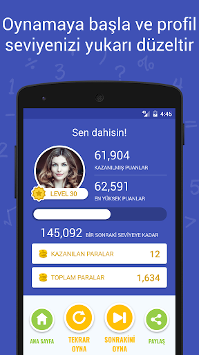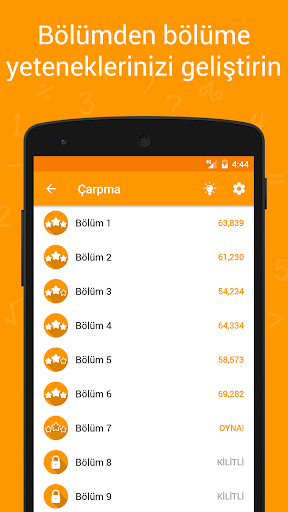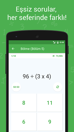 Bölümlerin zorluk seviyelerine göre birbirinden eşsiz rastgele matematik soruları / bulmacaları size sunulacaktır. Her oyunda bir soruyu değiştirme izniniz olacaktır.