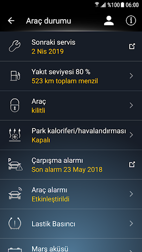 • Aracınıza uzaktan erişim (örneğin kapı kilitlerinin açılması ve kilitlenmesi, park kaloriferinin/havalandırmanın devreye alınması ve devreden çıkartılması)