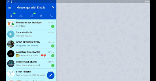Messenger with Emojis is faster than any other messenger. Secure Inbuilt calling option. Supports devices android 5 and above. High storage limitation. If notification are disturbing then turn it of.