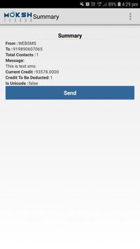 From this Android App You can send Promotional and Transactional Bulk SMS. You can send SMS to Single - Single number also and you can Send SMS to All Groups also which are saved on www.mokshtechno.com. You can also see the delivery reports of sent SMS and you can also see graphical reports as well.