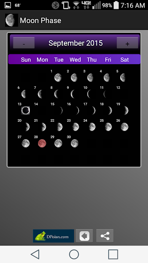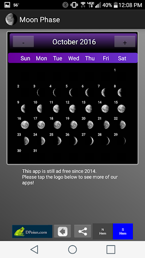 Yeni bir ekleme: Tam bir takvim, böylece herhangi bir yılın herhangi bir saati için ay aşamalarını görebilirsiniz. Ayrıca kan ayları, tutulip vb. Göstermek için özel yeni grafikler ...