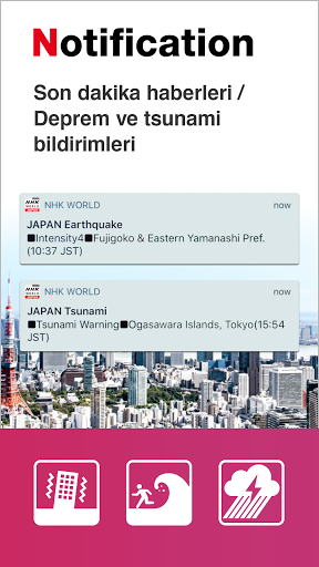 - Deprem ve tsunamilerle ilgili acil durum bildirimleri *İngilizce ve Çince