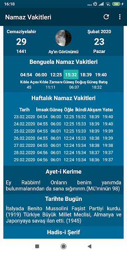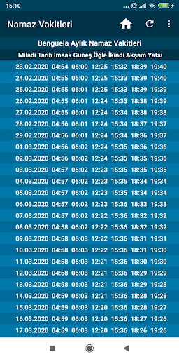 Namaz Vakitleri Uygulaması; - Seçilen konum için namaz vakitleri - Günlük, Haftalık ve Aylık namaz vakitleri - Pusula - Ezan hizzmetlerini içermektedir.