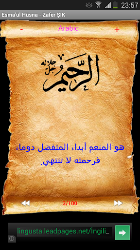Esmaül Hüsna uygulamamız Cenab-ı Hakkın 99 esmasını 3 ayrı dilde kısa anlamlarıyla anlatan uygulamadır. Şimdilik Türkçe, İngilizce ve Arapça olarak hizmetinize sunulmuştur.