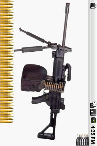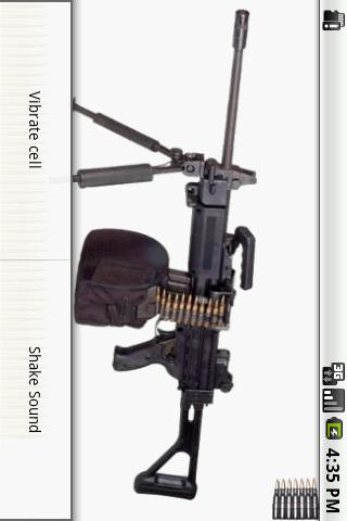 You can simulate Negev just shake your phone or just by clicking on the weapon. If you run out of bullets is just click on the charger that charges the Negev again. The phone vibrates when shootingTo fire you just shake your phone or touch the screen.Great quality of the sound of gunfire.Menu has the option to vibrate the cell while shoot. Menu also has the option to vibrate the phone to shoot.Technical specifications on the Negevgun below is for users who do not know the NegevThe Negev is a gasoperated automatic firearm that uses propellant gases from the barrel to cycle a shortstroke gas piston operating system under the barrel and a rotary bolt locking mechanism. The bolt itself features 4 radial locking lugs that engage the barrel extension and its rotation is controlled by a pin on the bolt body, which rides inside a camming guide machined into the bolt carrier. The bolt contains a springpowered casing extractor unit, while a lever ejector is housed inside the receiver it is rotated by the recoiling bolt carrier.The Negev is strikerfired, where the bolt carrier assembly acts as the striker. The light machine gun fires from an open bolt position. A levertype fire control selector switch is provided A fullautomatic fire, R semiautomatic fire, installed on the left side of the pistol grip, which doubles as a manual safety against accidental firing. The safe S position disables the sear mechanism which makes it impossible to cock the bolt carrier, by lifting the lever responsible for holding the bolt carrier in the forward position and disconnects the trigger mechanism from the sear. The weapon can be secured safe regardless of the position of the bolt carrier group The cocking handle is equipped with a ratcheting mechanism that immobilizes the partiallycocked bolt carrier.The Negev feed from an M27 disintegrating, openlink ammunition belt, carried in a 150round fabric container that clips into the magazine well or alternately from a 35round box magazine from the Galil assault rifle or a 30round STANAG magazine from the M16 rifle with the use of an adapter. 200round ammunition belt containers are also available. Belted ammunition is introduced into the feed tray port from the left side, while the magazine is inserted vertically into the magazine well at the base of the receiver. The feed system uses a pawl feeding mechanism, driven by the recoiling bolt carrier, but the belt is moved only during the rearward movement of the bolt carrier. The nonreciprocating charging handle is located on the right side of the weapon.This gun have in games:Half Life, Combat Arms,Battlefield, Gunz the Duel, CS, Soldat, Doom, Quake, Americas Army, War Rock, Medal of Honor, Call of Duty, SOCOM, Metal Gear Solid, Crysis,Tom Clancys,Company of. HeroesKeiword : pistols, revolvers, grenade launchers, submachine guns assault rifles, battle rifles, carbines, flamethrowers, sniper rifles, shotguns, machine guns Gun, guns,AK47, Beretta, Colt, ak47, CSS,war, battle, weapons, magnum, uzi, weapon, weapons, 38, 45, sounds.