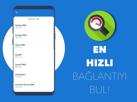 -Tek bir dokunuşla, bağlantınızı güçlendirmek için çevrenizdeki dns sunucularından en hızlısına bağlanabilirsiniz. Bu sayede internet sayfa yükleme sürenizi düşürebilirsiniz.