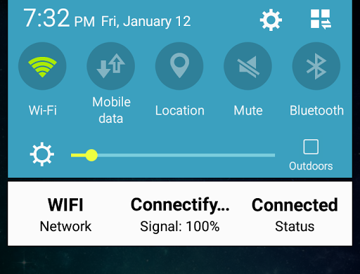 - Notifies the user if they are connected using WIFI, Mobile Data or None in the Status Bar and Notification Panel.