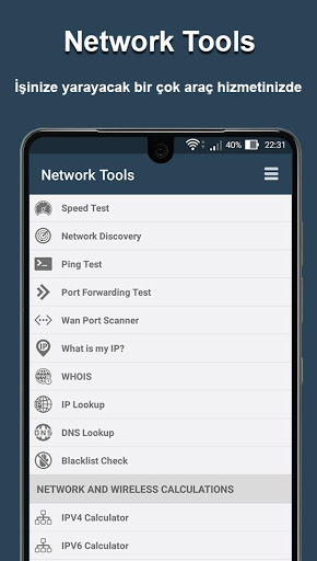 İnternet Hız Testi, Wi-Fi tarayıcı, Port testi, DNS sorgusu, ping ve Servis izleme ve ağ tarafı hesaplamaları gibi ücretsiz ek araçlar ile mutlaka sahip olunması gereken bir uygulamadır.