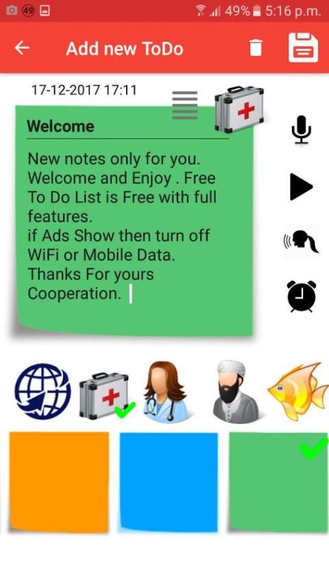 User can set a Daily To Do List Notes Alarm Reminder to be reminded of things you need to do every day