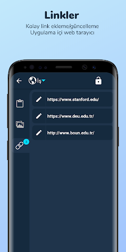 Üç farklı şekilde not ekleyebilirsiniz; fotoğraf, yazı ve link. Bu sayede düzenli bir şekilde notlarınıza erişebilirsiniz