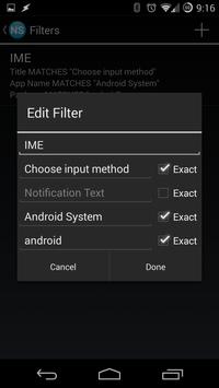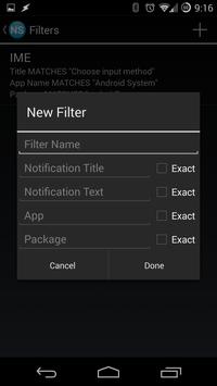 NOTE: Filters operate in real time, previous notifications will be kept when you create a filter. New notifications that satisfy the filter will be blocked while the filter is active.