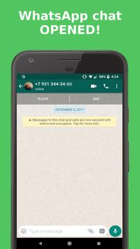 This app use an official whatsapp API to open a chat with any number you enter without create it as contact on your device.
