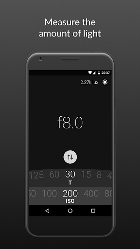 App supports setting the ISO value and measuring for shutter speed or aperture. Device sensors are usually not accurate enough for low light situations, that's when you can use the descriptive presets to determine the amount of light.